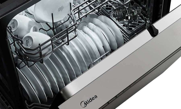 The Midea Front Control Dishwasher features advanced cleaning technology and an Extended Dry feature for spotless dishes and extra dryness. Its 7-segment digital display offers intuitive operation, while the hybrid stainless steel tub and bright interior lighting simplify loading. With flexible loading options and an NSF-certified Sanitize Cycle, cleaning is effortless and worry-free.