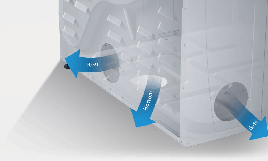 This dryer comes with 3-way venting options. Vent pipe can be installed from the back, side or bottom according to different building structure and design.