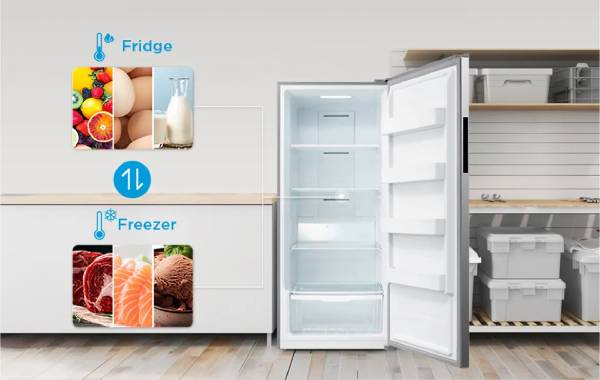 Effortlessly switch between freezer and refrigerator modes, offering flexible storage for frozen goods, perishables, and beverages.