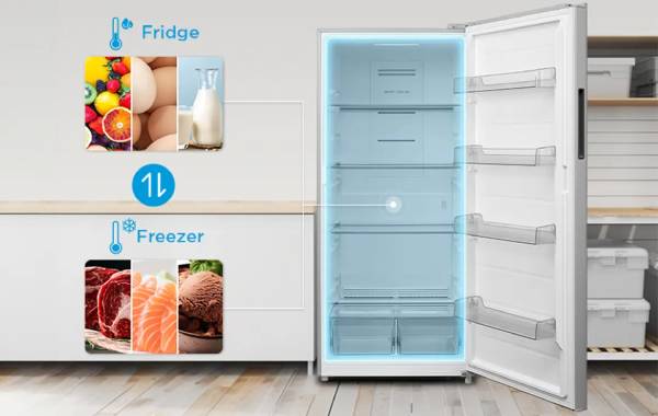 Switch between freezer and refrigerator modes for versatile storage, adapting to your needs for both frozen and fresh items.