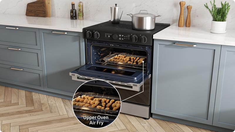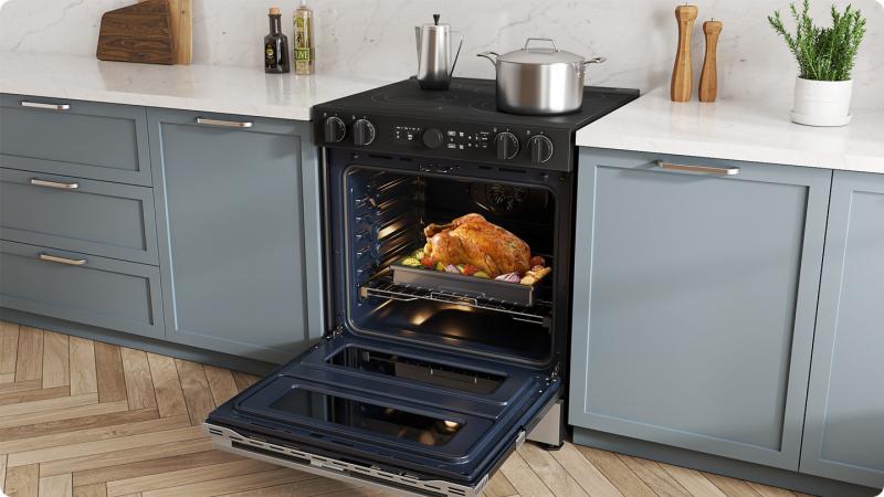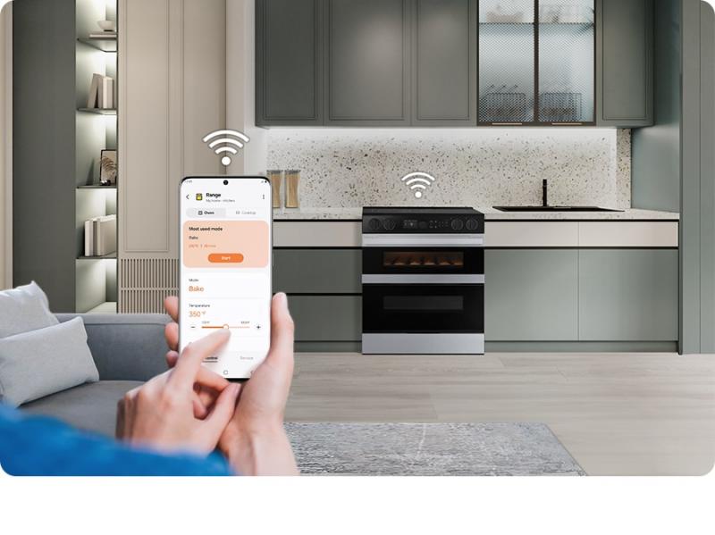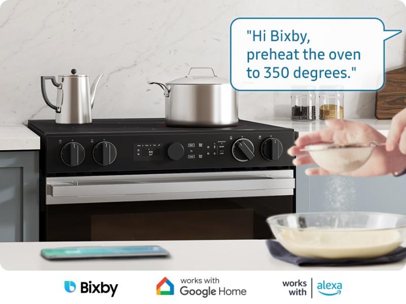 Enjoy added convenience and peace of mind with embedded Wi-Fi. The SmartThings App* lets you monitor and control the oven anywhere using a smartphone. You can check and adjust settings and receive alerts. You can also control it with your voice using a voice assistant**, like Samsung Bixby***.