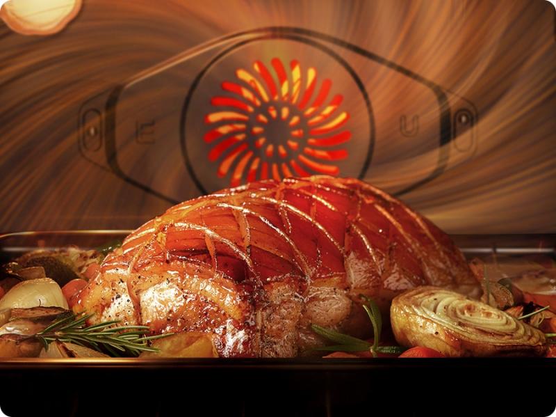 Cook food evenly without it being overcooked or drying out. The Air Sous Vide* system continually senses the temperatures inside the oven and maintains an even temperature for a long period. So everything is cooked thoroughly, wherever it is in the oven, and tastes deliciously tender and juicy.