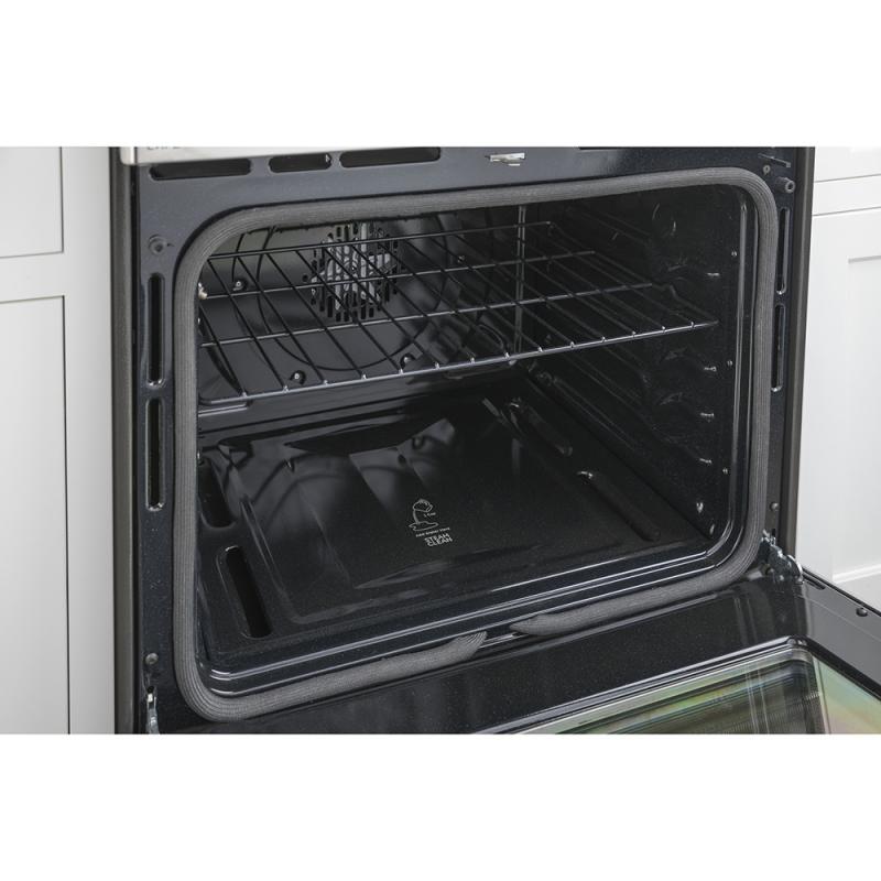 This oven features a hidden baking element that gets rid of hard-to-reach areas and makes cleanup easier