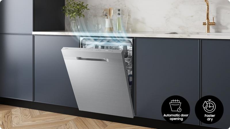 Enjoy sparkling clean dishes with the AutoRelease™ Drying feature. When the rinse and dry process is complete, the door automatically opens 5 inches to allow steam to escape. It gives you faster and better drying results than conventional methods*, especially for small items.