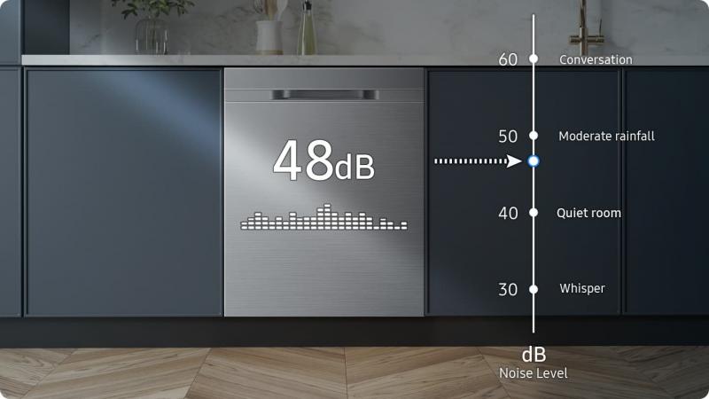 Avoid creating a disturbance at home with an ultra-quiet dishwasher. A frictionless Brushless DC electric motor reduces noise significantly and its insulated stainless steel tub absorbs much of the sound and vibration. At just 48 decibels* it is quiet enough not to disturb your daily life.