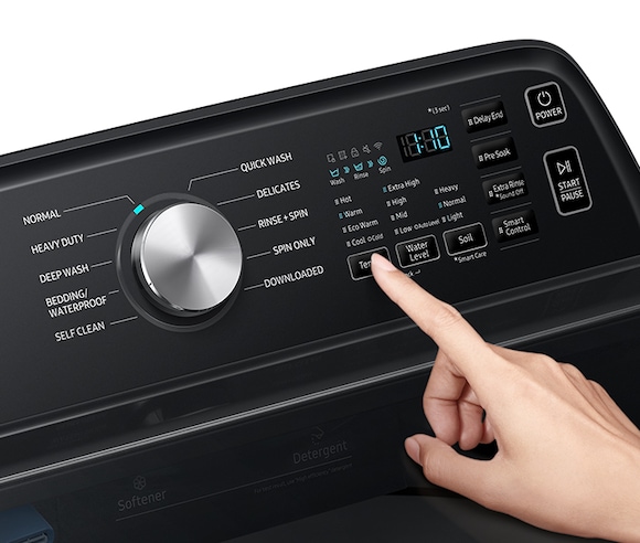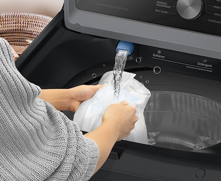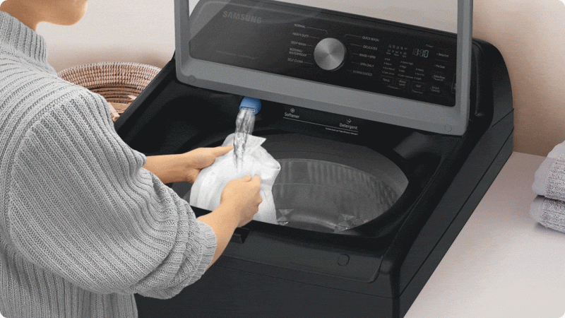 A built-in water faucet lets you easily pretreat soiled or heavily stained clothes with a press of a button. Scrub items right inside your washer, no laundry room sink needed.