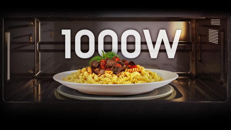 Despite having a compact design, the mircrowave packs an impressive output power of 1000W. It cooks quickly and evenly, which saves you time and energy. It also gives you added flexibility, as you can be sure that even large dishes are cooked thoroughly.