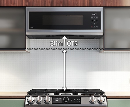 Enhance the look of your kitchen with the slim design of the slim OTR microwave.
