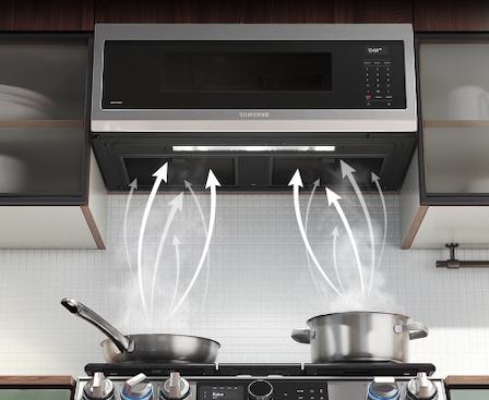 400CFM suction capacity on the vent below the OTR helps deliver ventilation when cooking.