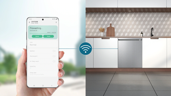 Wi-Fi Connectivity lets you remotely monitor and control your dishwasher using the SmartThings App*. Turn it on/off, delay start, get cycle suggestions, select programs and receive diagnostics information.