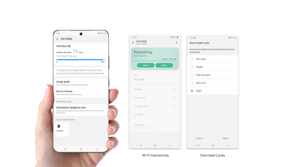 Customize your cleaning experience whenever you want.The Download Cycles option lets you choose from 5 additional specialist programs and download the one you want using the SmartThings APP.Simply select "Night","Self Clean","Pots and Pans","Plastic","Baby Care" cycle.