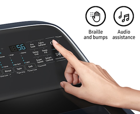 Find the right controls easily even if you are visually impaired. The top load washer provides audio assistance by playing a different sound for each option. It also has braille next to the buttons on the control panel to indicate exactly what they are.