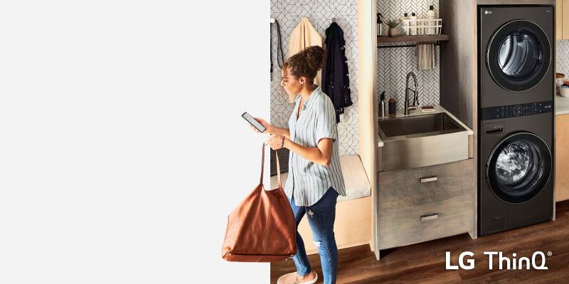 Expand the limits of your laundry room with the ThinQ® app. Remote start your washer or dryer, select a cycle, start or stop the wash and get notifications about when your laundry will be done. from