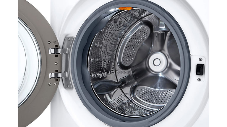 Unlike porcelain and plastic, stainless steel tub avoids chips that snag on and ruin clothing.