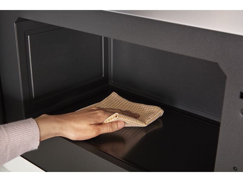 Add a bowl of water to the microwave and press Steam Clean to help lift splatters, then wipe them away for a simple clean.